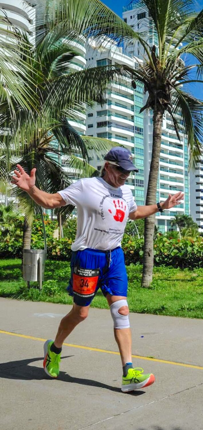 Allen ran in Wolf’s Fang, Antarctica; Cape Town, South Africa; Perth, Australia; Istanbul, Europe and Asia; Cartagena, South America; and Miami.