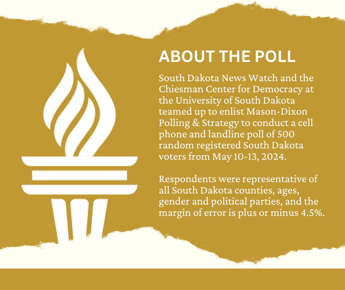 Poll respondents were selected randomly from a telephone-matched South Dakota voter registration list that included landline and cellphone numbers. Quotas were assigned to reflect voter registration by county. The margin of error is plus or minus 4.5 percentage points.