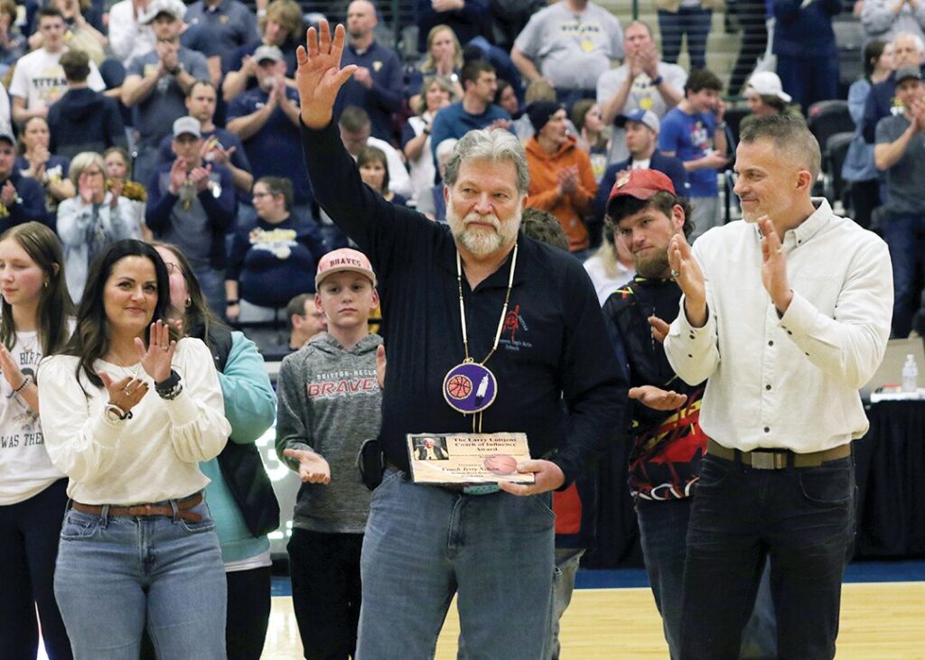 Terry Nelson, a 1975 FHS graduate, was presented the first Larry Luitjens Coach of Influence Award at the State Class A girls tournament last weekend. The award was presented by the late Luitjens children. The award will serve as a road map for current and future coaches, showing them how to go beyond the Xs and Os and to strive to be coaches of influence.